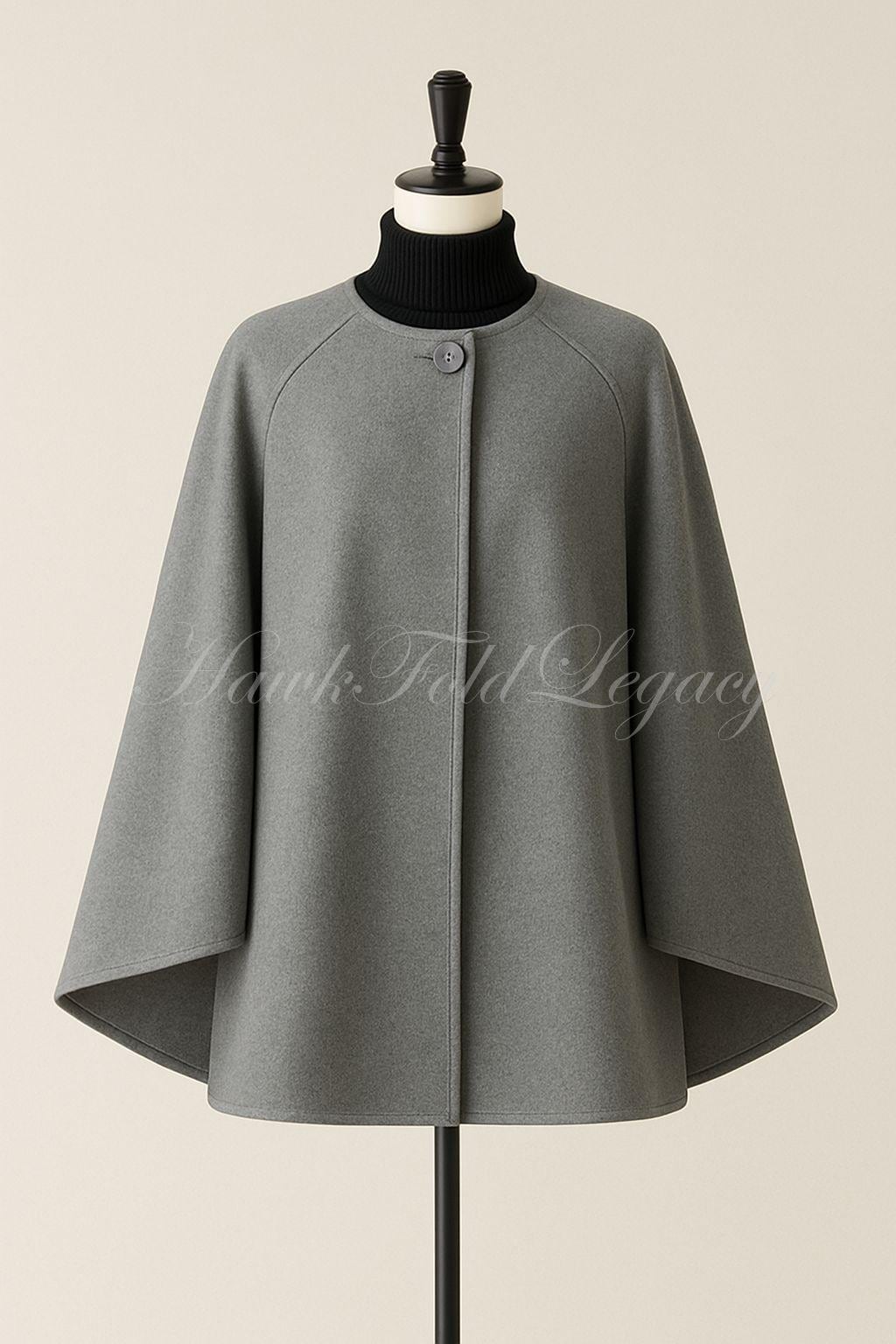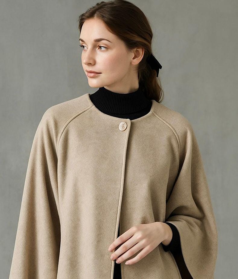 Made from a premium wool-blend fabric, this cape coat provides exceptional warmth while remaining lightweight and comfortable — perfect for chilly autumn days and crisp winter evenings. The single-button closure and clean cut give it a classic, minimalist look that pairs beautifully with both formal and casual attire.