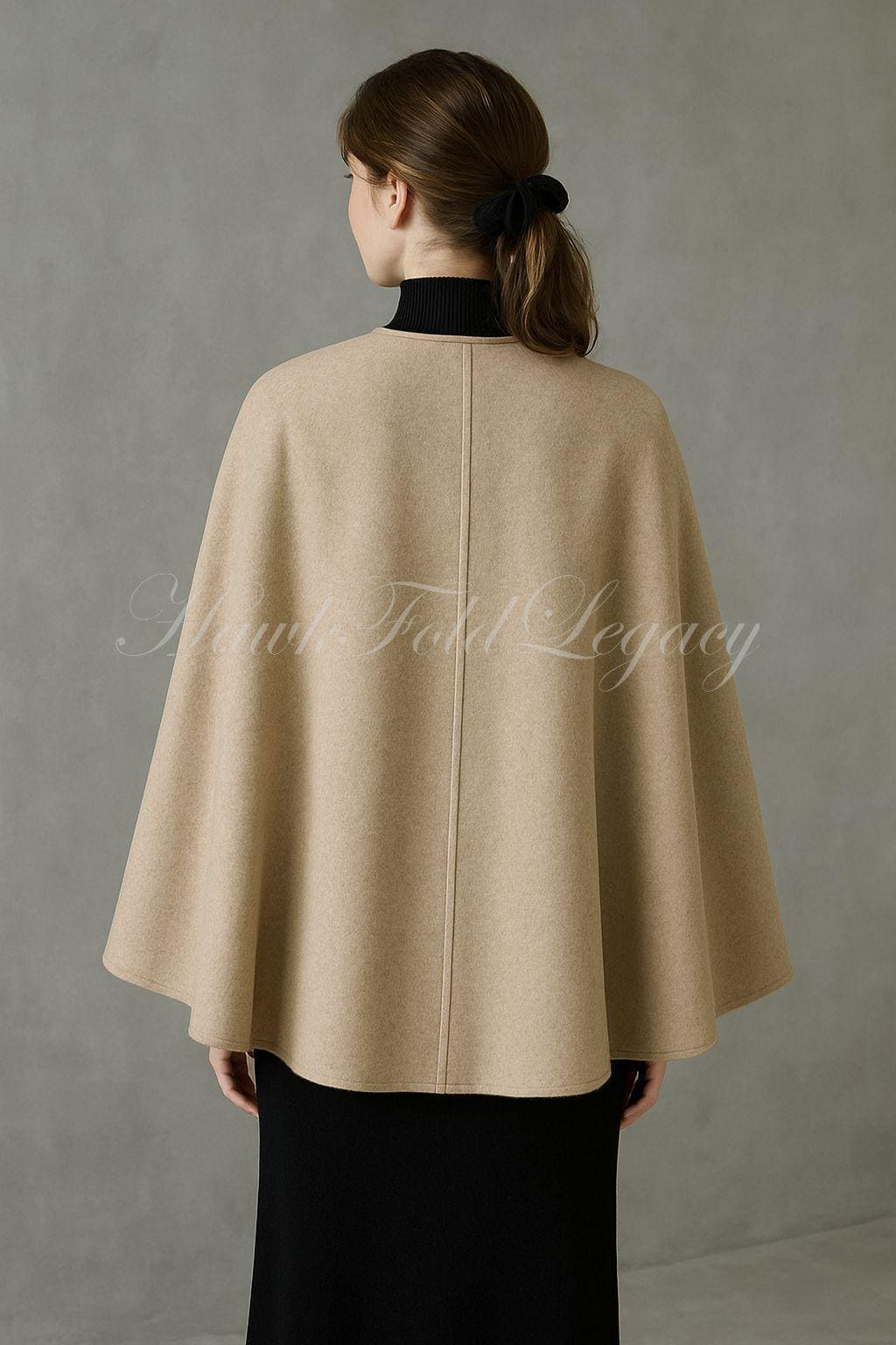 Women’s Wool Cape Coat | Elegant Beige Cloak Jacket | Minimalist Winter Poncho | Vintage-Inspired Outerwear | Classic Fall Wrap Coat | Handmade Fashion Cape