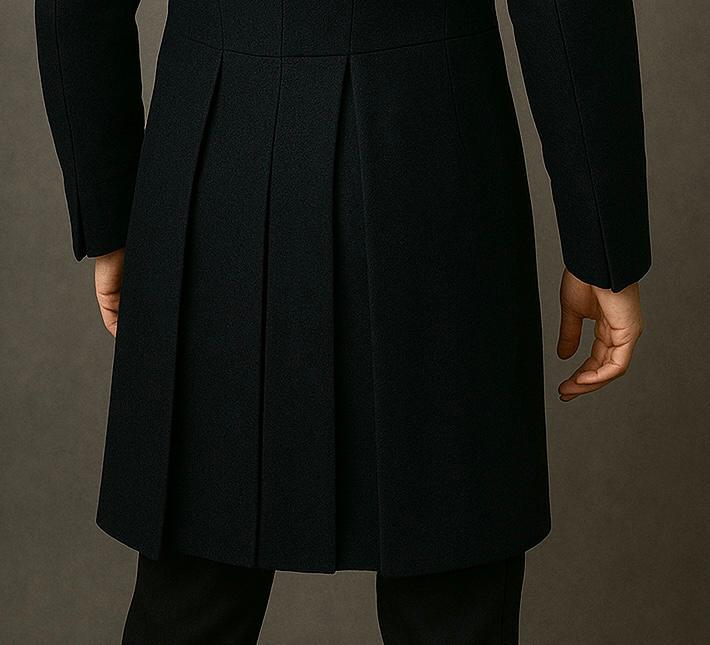 Features: Tail-back design, brass metal buttons, high-quality stitching