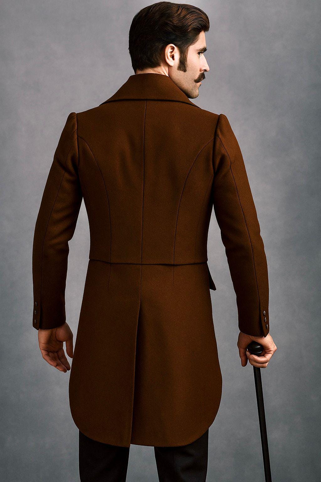 Men’s Victorian Brown Wool Regency Tailcoat, Vintage Gothic Style Steampunk Frock Coat, 19th Century Historical Overcoat Cosplay