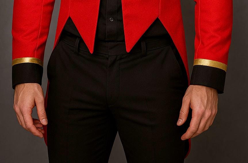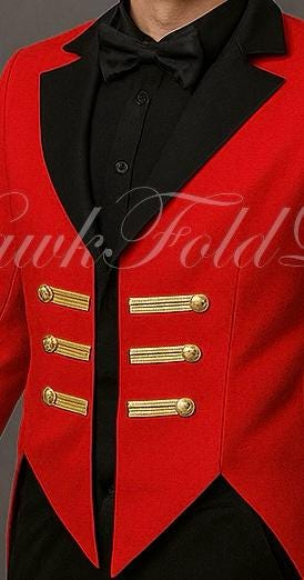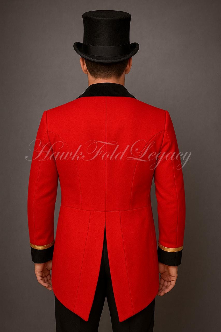 Men's Ringmaster Wool Tailcoat Jacket | Circus Showman Coat | Carnival Parade Costume | Victorian Tailcoat with Gold Trim | Halloween & Cosplay Costume Outfit