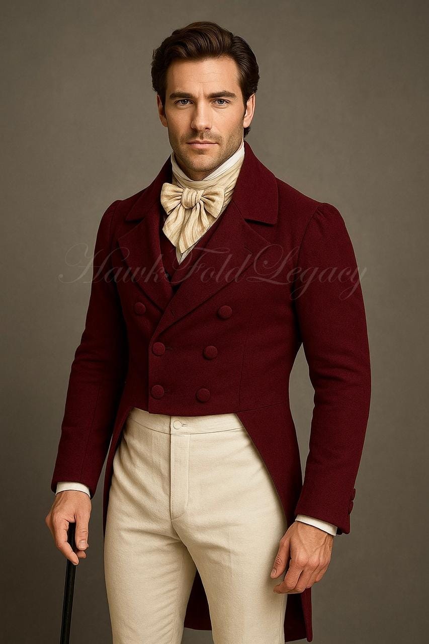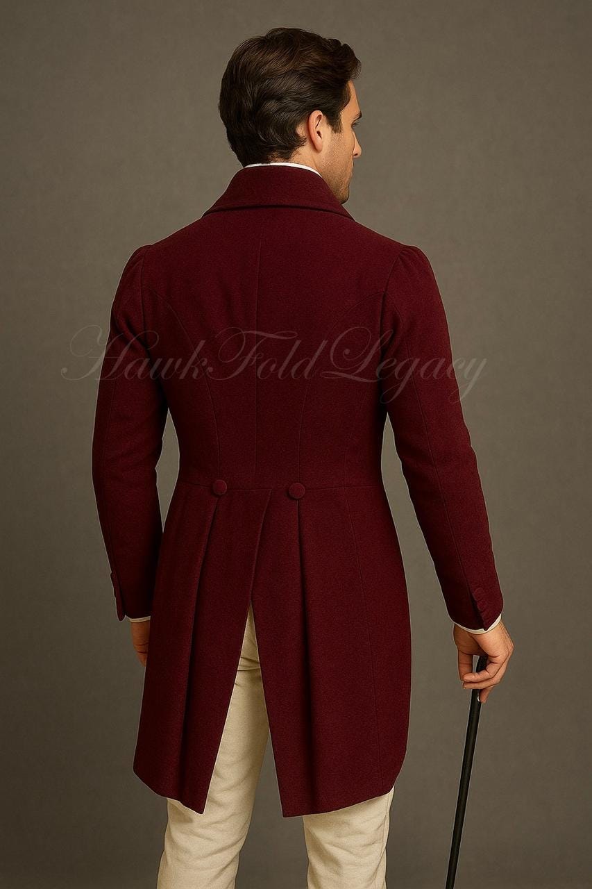 Men’s Victorian Wool Regency Tailcoat, Vintage Gothic Steampunk Frock Coat, 19th Century Historical Overcoat